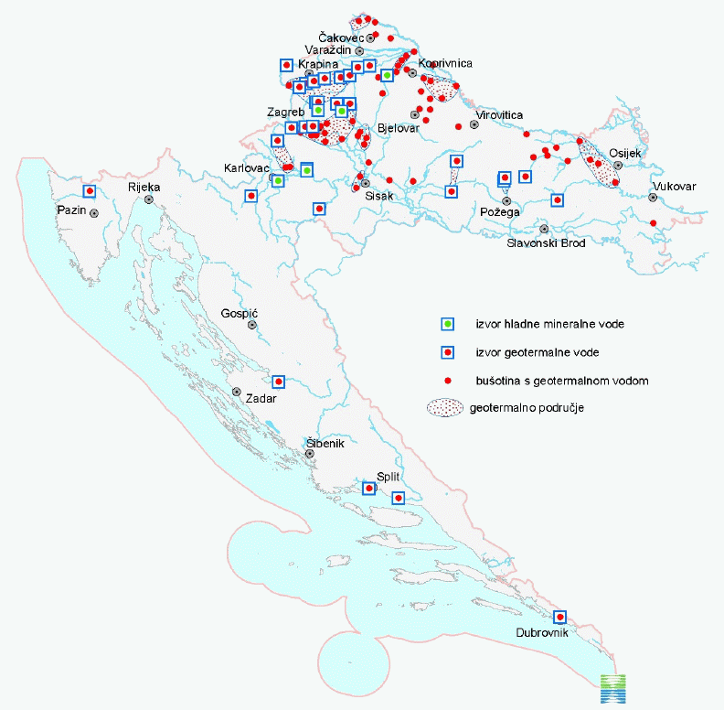 Slika 3.20. LOKACIJE ZAHVATA GEOTERMALNIH I MINERALNIH VODA