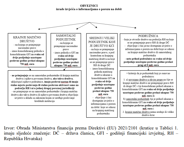 Tablica 1. Obveznici izrade izvješća o informacijama o porezu na dobit
