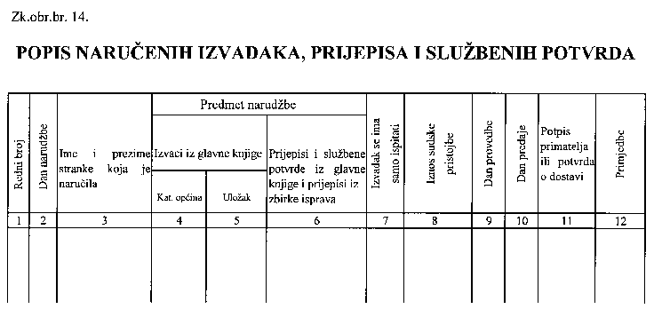 Razgledanje položenih isprava, izvaci, prijepisi, službene potvrde