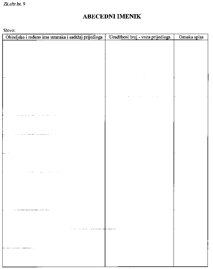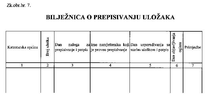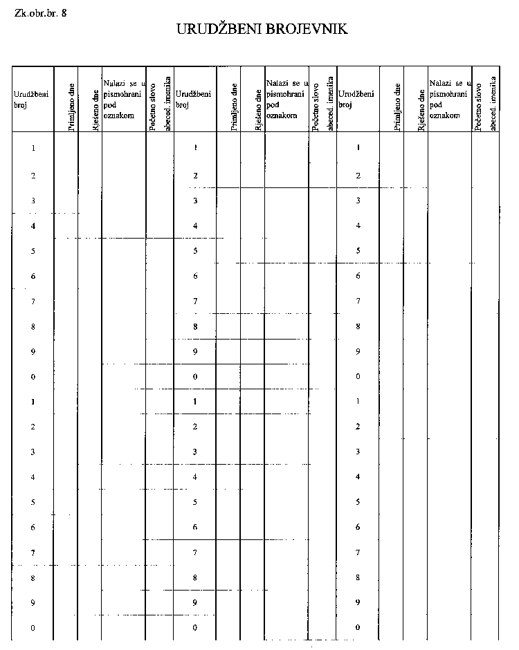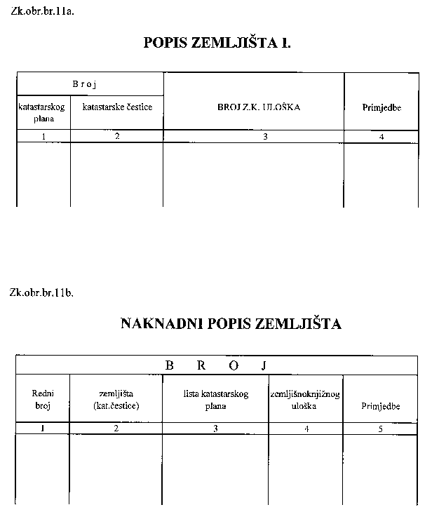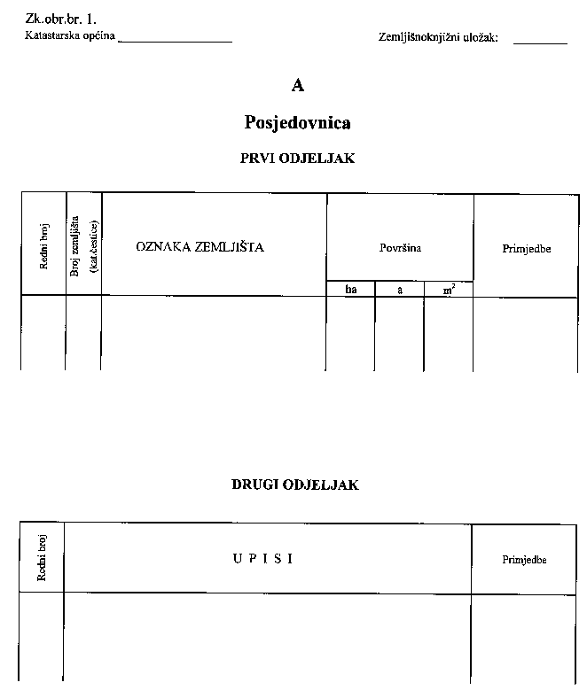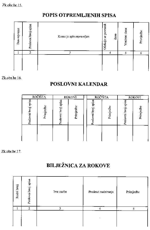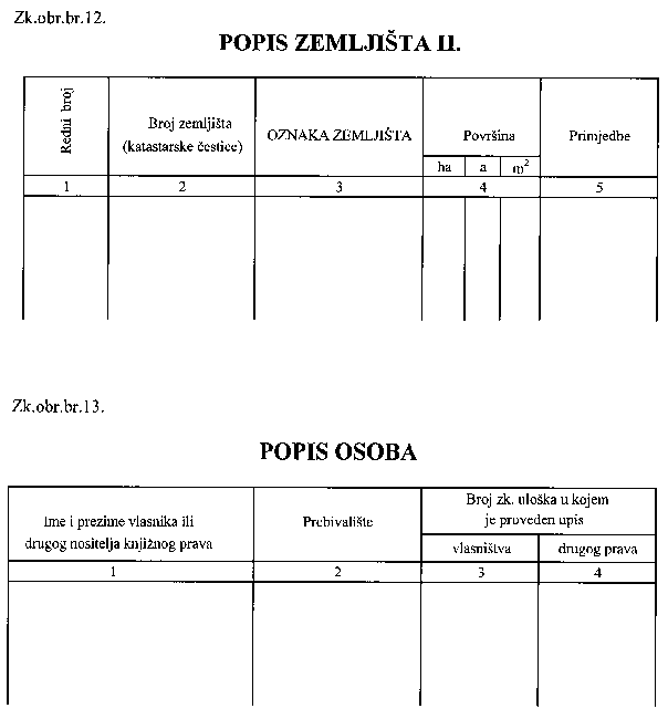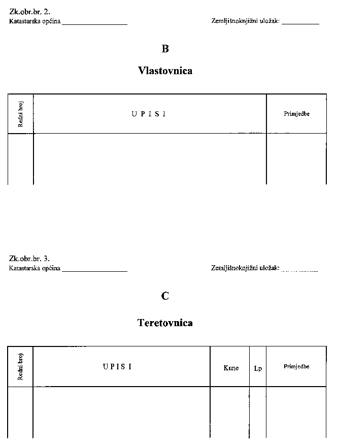(3) Za zemljišnoknjižne uloške upotrebljavaju se zemljišnoknjižni obrasci (zk. obr.) br. 1-3, a za poduloške zemljišnoknjižni obrasci 4-6 određeni Poslovnikom.