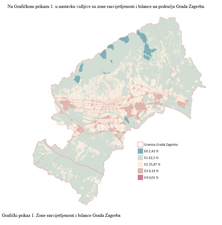 Područje Grada Zagreba podijeljeno je u zone rasvijetljenosti zavisno od sadržaja i aktivnosti koje se u tom prostoru nalaze, a sukladno prostorno-planskoj namjeni i kriterijima koji su definirani Pravilnikom o zonama rasvijetljenosti i prostorno-planskoj namjeni. Zone rasvijetljenosti su: